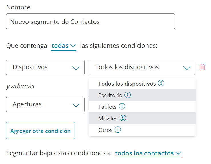 Puedes segmentar tus contactos por características o comportamientos similares.