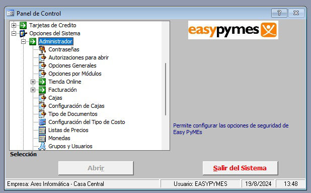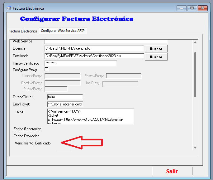 Para revisar el Vencimiento de Certificado de Factura Electrónica de AFIP en EasyPyMEs Software de Gestión