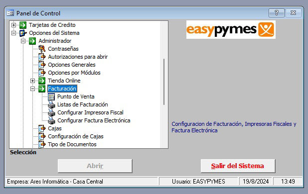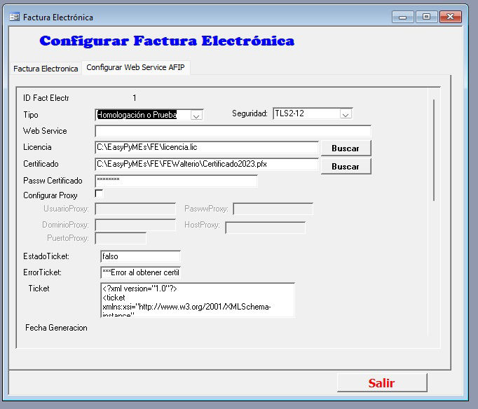 Para revisar el Vencimiento de Certificado de Factura Electrónica de AFIP en EasyPyMEs Software de Gestión